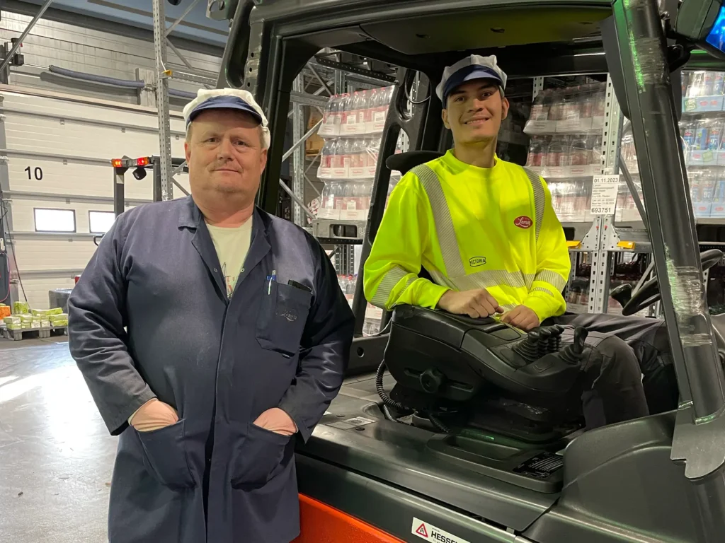 Juan har nyleg starta som lærling i logistikkfaget hos Lerum, og stortrivast med å køyre truck. Det er mykje som skal lærast, men her startar dei med opplæring i lasting. Dei fleste synes det er trongt og skummelt å flytte på pallar med saft og sylteglas. Juan synest det var kult frå første dag. Utviklande med lærling Fagansvarleg Bent Sjøthun fortel at det er mykje dei skal gå i gjennom i læretida. Det er viktig å lære seg datasystemet, slik at ein held orden vareflyten. Alt må dokumenterast, og det krevst god struktur. Logistikkfaget er ein viktig del av fabrikken, og eg synes det er god læring for oss som er fagansvarlege å ha lærlingar. Det utfordrar oss og er utviklande for alle.